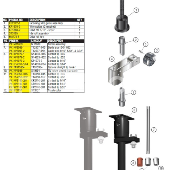 Токосъемные наконечники под диаметры .052", 1/16", 5/64", 3/32" (KP1979-2, KP2100-серия)