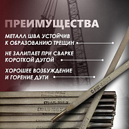 Процесс сварки отличается мягкой и стабильной дугой, шлак обладает хорошей текучестью и легко отделяется после застывания;
